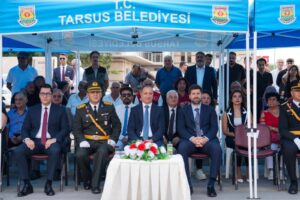 Tarsus’ta 30Ağustos Zafer Bayramı’nın 103. yıl dönümü dolayısıyla Cumhuriyet Meydanı’nda düzenlenen çelenk sunma töreni yapıldı