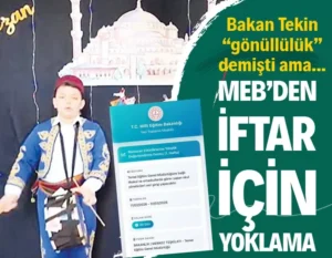 MEB’den iftar için yoklama Bakanlık, okul yönetimlerinden etkinliklere her hafta katılan öğrenci ve velilerin sayılarını istedi. Talimatın ramazan öncesi verilmesi dikkat çekti